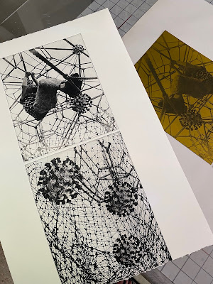 After pulling a proof and contemplating my next move, I decided that I wasn't happy with the image divided in two. It didn't look cohesive. The two smaller plates won't be discarded and will be fun to experiment with and see how they can be used in a different way.